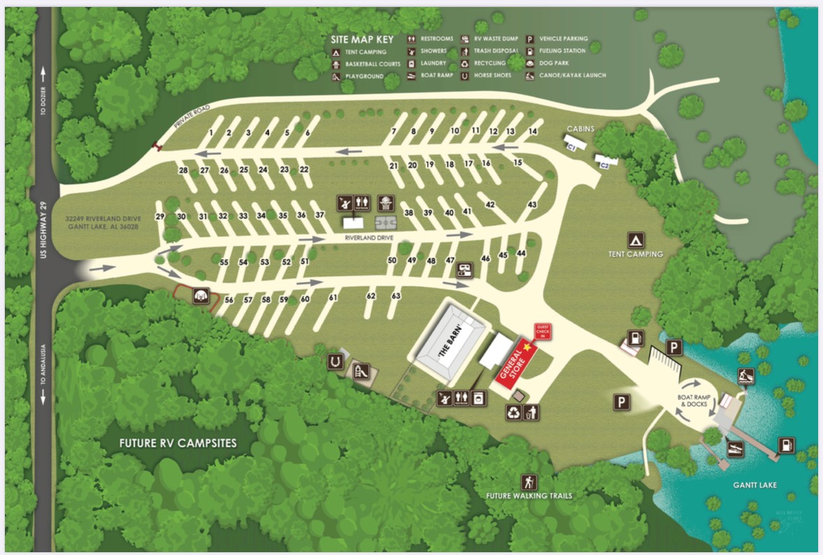 Nestled along the pristine shores of Gantt Lake in South Alabama, Cypress Landing RV Park offers a perfect blend of natural beauty and family-friendly amenities. Guests are welcome to explore Gantt Lake’s 2,700 acres of sparkling water and 21 miles of scenic shoreline.